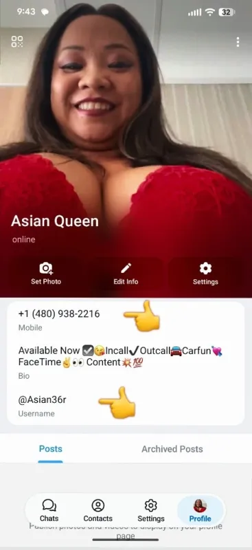 My Telegram Id - @asian36r My What'sApp number: 480 938 2 216 Horny Young Sexy asian girl This is my real add. I'm independent. Sexy Girl. House or any where you like. I'm always ready for fun and sex. With a young or older man .I need sex and fucking. I need sex everyday.You can get from me everything that u need. I'm available day/night. Incall / Outcall /Car/Hotel fun. If you interested,text me or call me Best Blowjob Included anal Penis Massage & suck Shower sex Bbbj Greek Nuru massage ✔Kissing Gfe and 69